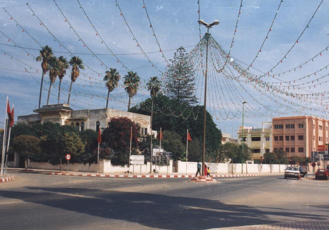 | Ront point de Moulay ALI BOUGHALEB, le meilleur rond point, on y observe la route qui amène à la mairie de la ville et à la gare ONCF centrale (à gauche de l'image) où bien à la gare routière, au tribunale ou encore à la gare férovière Moulay Mahdi (à droite de l'image). |